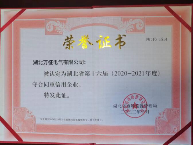 春風春雨花經眼,江北江南水拍天;湖北襄陽有萬征,襄城樊城都是春。陽春三月、草長鶯飛,湖北萬征電氣有限公司也接連喜獲榮譽:省級及市級“守合同重信用企業”,萬征電氣始終將企業信譽視作長盛不衰的生命力!認真對待每一個客戶、每一份合同,堅決做到嚴格按照合同條款執行合同,從不弄虛作假、以次充好!從不延誤貨期、延時服務,認真為每一個客戶做出質量可靠的產品及及時周到的現場服務工作!公司成立六年來,沒有一件合同糾紛及官司!這充分證明了湖北萬征電氣有限公司是真正的“守合同重信用企業”,絕不是浪得虛名!我們始終踐行“信念堪比長征、信譽鑄就萬征”的企業精神,力爭把萬征電氣各項工作及經營業績更上一層樓!